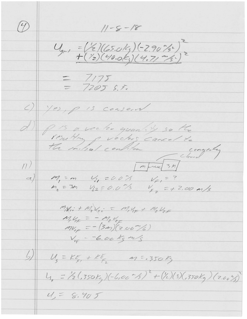 - elastic collisions: Objects collide and then separate -- kinetic energy and momentum are BOTH conserved