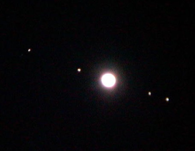 When Galileo pointed his very first telescope at Jupiter in the early 17th century (1610 actually) he saw THIS: