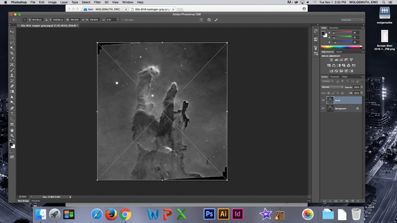 Open the second file and place it right on top of the first and click the mouse to "place" that image once it is centered.