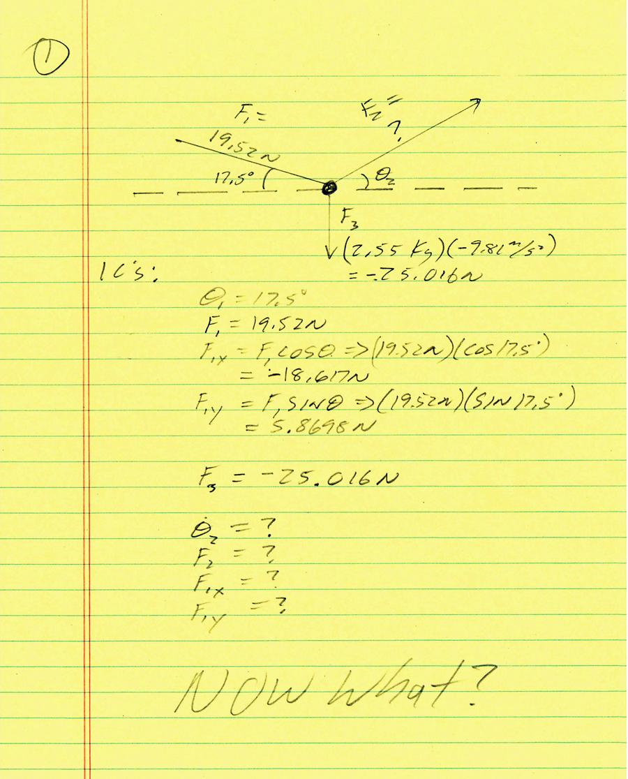 OPENING QUESTION: Consider a 50. kg object out in deep space that experiences a 25 N push to the left, a 65 N pull to the right and another 10 N push upwards and yet another 40. N pull down.