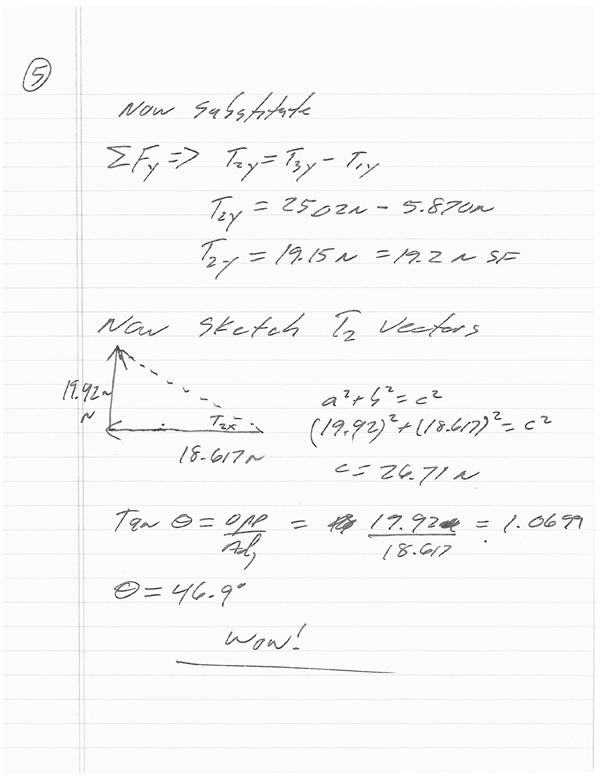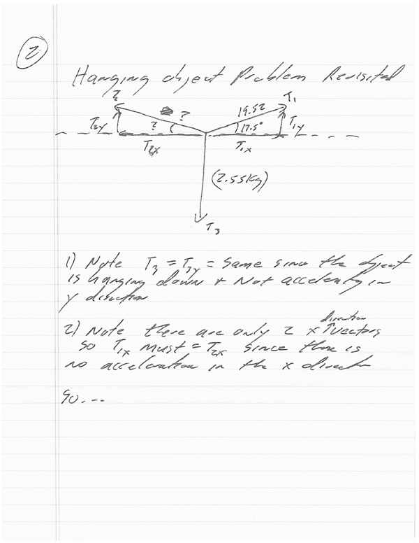 Here's a hanger problem that is a bit more sophisticated. We find that the object is NOT at rest which means we have to find the RESULTING X and Y vectors and use those to create a brand new triangle (yikes!)