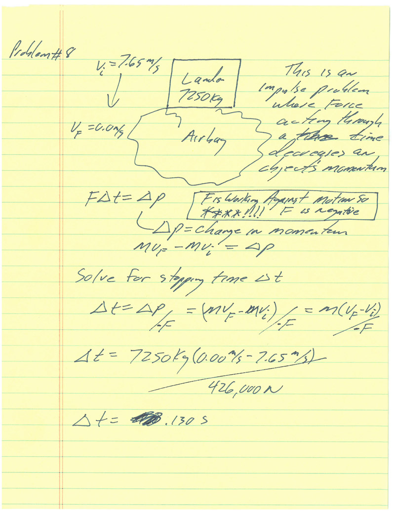 This problem emphasizes the fact the the change in momentum occurs when velocity goes to zero.