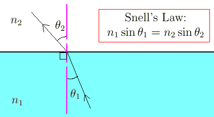 That brings us to this VERY helpful relationship known as "Snell's Law": n1sin Θ1= n2sinΘ2