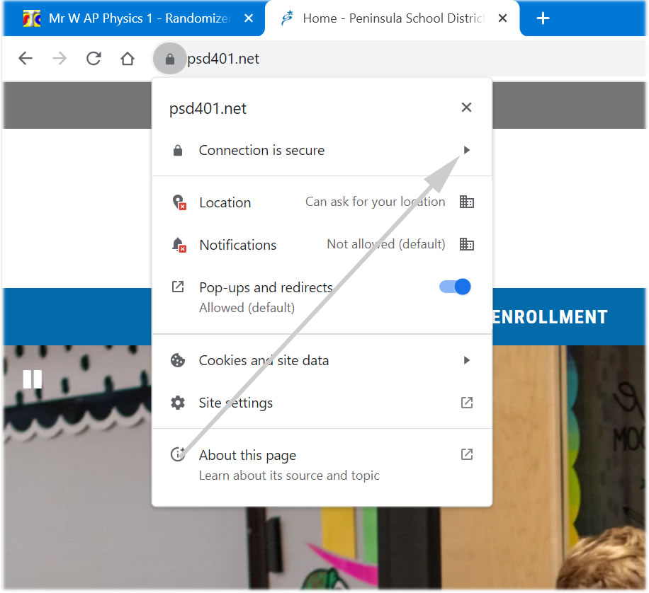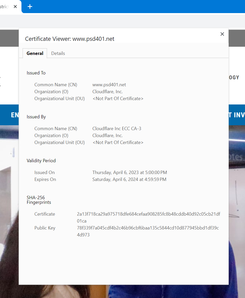Let's go and take a gander at the public key used for the PSD401.net site to keep that secure!