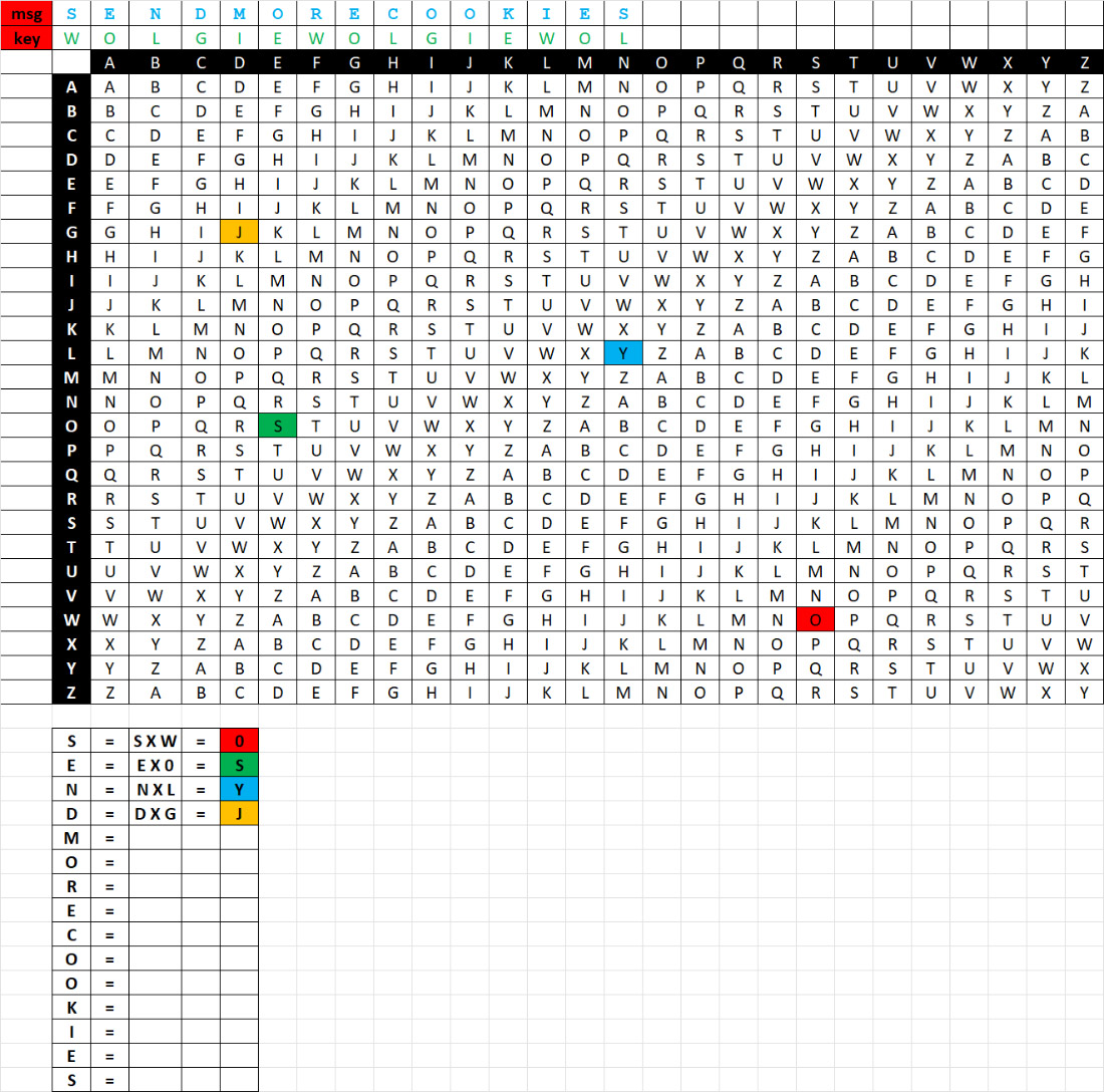 Below is the Vigenere Cipher - an amazing tool that went unbroken for over 300 years (from the 16th 'til the middle of the 19th's century!!) (YIKES!)