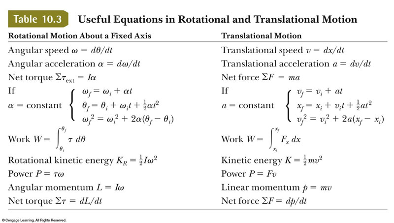 Take a few moments to get comfortable with the more esoteric terms... remember, although many of the linear formulae are present on your equation sheets, virtually NONE of the rotational analog equations are present there.