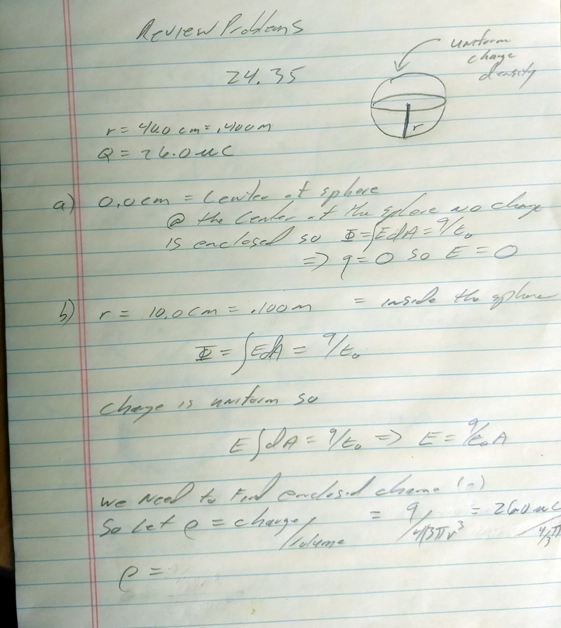 Try problem 24.35 on page 742 is kinda interesting (generally). Please annotate your work to help you zero-in on what you understand and what might be a bit scattered at this point.