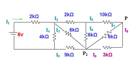 We Start By Labeling the Current in AND out of EACH Junction Point Normally I'd draw arrows at each junction, but that would make this beastie just too cluttered, so we're going to assume right arrows and down arrows at each junction