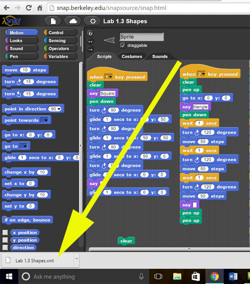 3) Notice that a file is created and displayed in the lower left corner of your screen (if you're using a Macintosh you'll have to go to your downloads forlder):