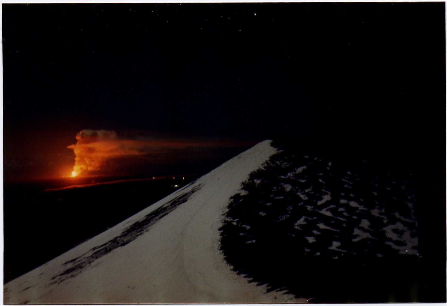 Also, see this 'fire and ice' photo I snapped of the full moon reflecting off the snow on the summit with the Kilauea Volcano erupting in the distance.