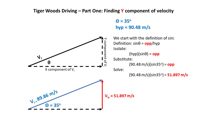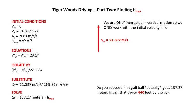 So, let's say Tiger Woods smacks a golf ball at 202.4 mph at an angle 35o to the horizontal: