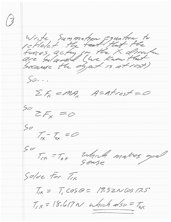 Here's a hanger problem that is a bit more sophisticated. We find that the object is NOT at rest which means we have to find the RESULTING X and Y vectors and use those to create a brand new triangle (yikes!)