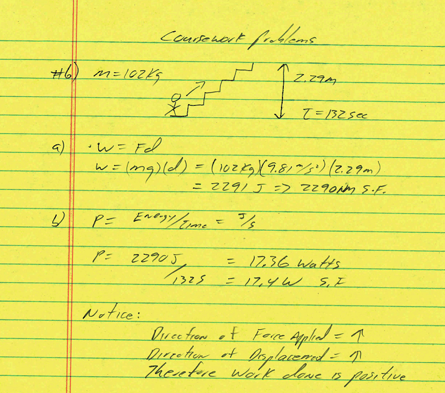 Problems 6: Fairly basic, but you must keep in mind that the force used to lift the person up the stairs is mg